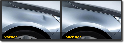 Mit der lackschadenfreien Ausbeul- und Klebetechnik (Schattentechnik) ist es möglich, Dellen schnell und preiswert zu entfernen.